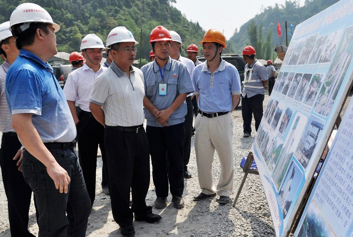 近日,廣西交通投資集團總經理劉可(前排左二)深入我公司參建的六寨至河池、河池至都安高速公路項目視察。