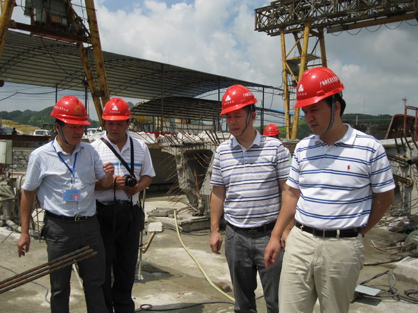 圖2:集團公司覃炳賢總工程師(左二)在項目檢查指導