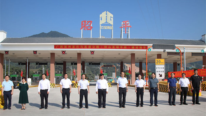 當日,通車現(xiàn)場會在賀州至巴馬高速公路昭平收費站廣場舉辦。賀州市市委副書記、市長林冠宣布通車,自治區(qū)交通廳副廳長陸曉明,賀州市副市長陳翼明,桂林市副市長彭代元分別講話,廣西北部灣投資集團黨委書記、董事長朱堅和致辭。